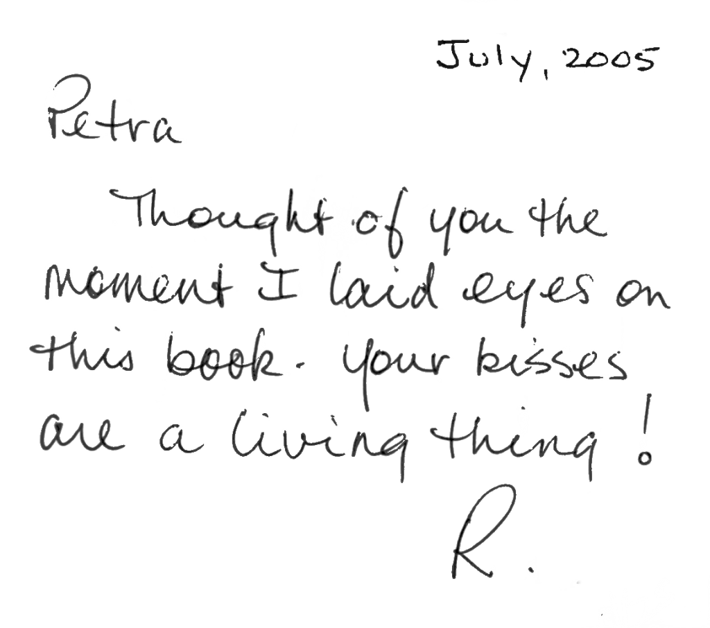 i’m troubled on my lunch break today and walk to the thrift store. as always, i’m paging through the books, looking for interesting paper ephemera to scan, or cut up for my endless collaging and scrapbooking. amongst the discarded and dog-eared volumes, i find a little book called “the kiss: lovers quotations and romantic paintings” and inside i find the above little love note dated july 2005.