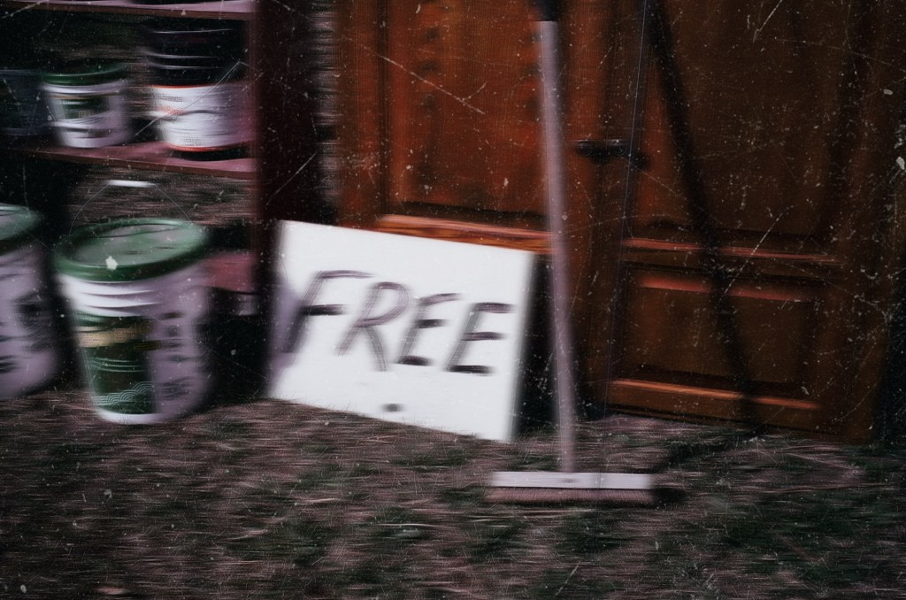 we drive through small towns and rural areas and pass an old farm house with a pile of junk at the end of the driveway marked “free”.