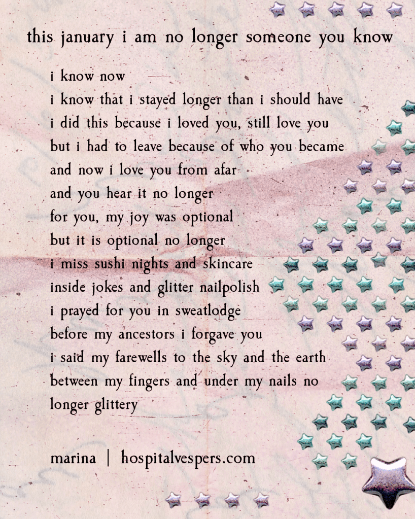 “this january i am no longer someone you know”
