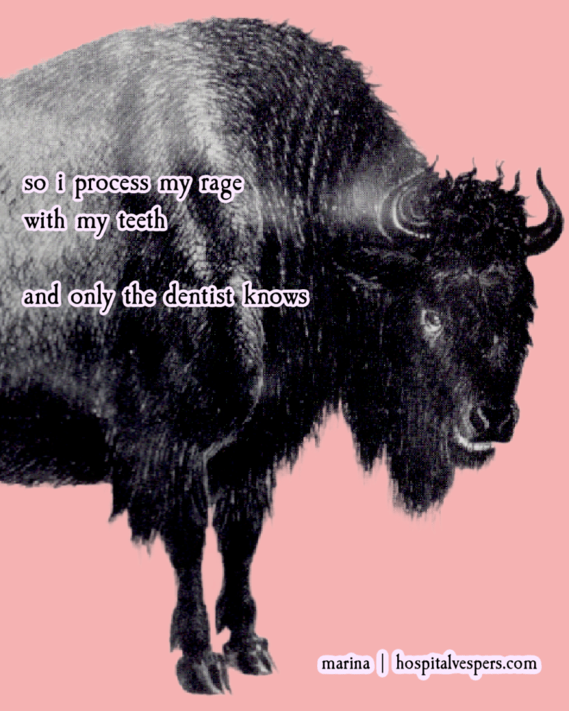 once, i went to this catholic church because they had a visiting finger bone from a saint – this relic in a huge ornate gold box. i wanted to see it and i saw it and i thought it was cool. it looked a bit like a bone from a chicken wing, except this one was holy, apparently. what the fuck does that even mean anymore?